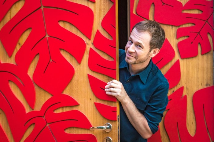 Já podemos montar um quebra-cabeça da casa com todas as dicas que a #RedeBBB está dando! Faltando um dia para a estreia do BBB18, temos mais um clique de Tiago Leifert dentro da moradia dos brothers. O apresentador mostra os detalhes de uma das portas da casa. Onde será que essa porta fica? Será a porta do Quarto do Líder? A porta da academia? Ou ainda, a porta pela qual os participantes vão entrar e sair do jogo? A verdade é uma só: não vemos a hora de espiar tudo! Aguenta coração! Relembre mais spoilers que a #RedeBBB deu para você! Tudo começou com o Boletim BBB mostrando o edredom que o Líder vai usar. Depois, Tata e Gui transmitiram o Boletim direto do Galpão de Artes do BBB revelando mais detalhes da decoração, como estátuas de flamingos e conchas. Como sabemos que a curisidade só aumenta, vimos algumas coisinhas que estarão na sala. Aí, a gente descobriu que os cômodos desta edição são decorados no estilo resort. O Quarto do Líder, por exemplo, agora é Bangalô do Líder. Luxo total! Ainda na pegada sol, sombra e água fresca, vimos uma foto do nosso apresentador na área externa, bem próximo da piscina.